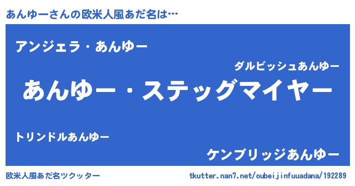 | 意味不明あだ名 | 『自称あんゆー』『永久保存あんゆー』 |