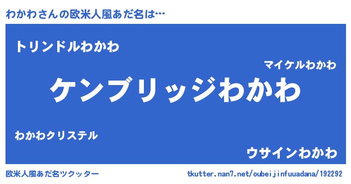 | 意味不明あだ名 | 『自称わかわ』『めかぶ科わかわ属』 |