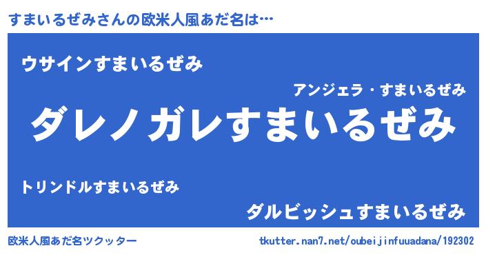 | 料理風あだ名 | 『すまいるぜみのカルパッチョ風』 |