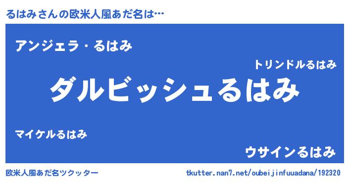| ヘコむあだ名 | 『るはみ(苦笑)』『るはお』『豆乳』 |