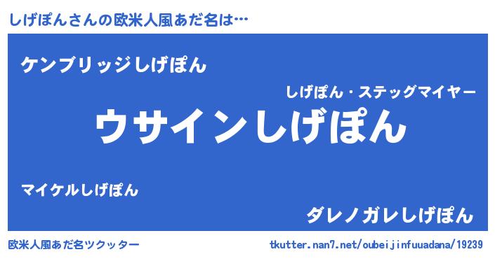 | 男性向けラノベタイトル風あだ名 | 『ダンジョンにしげぽんを求めるのは間違っているだろうか』 |