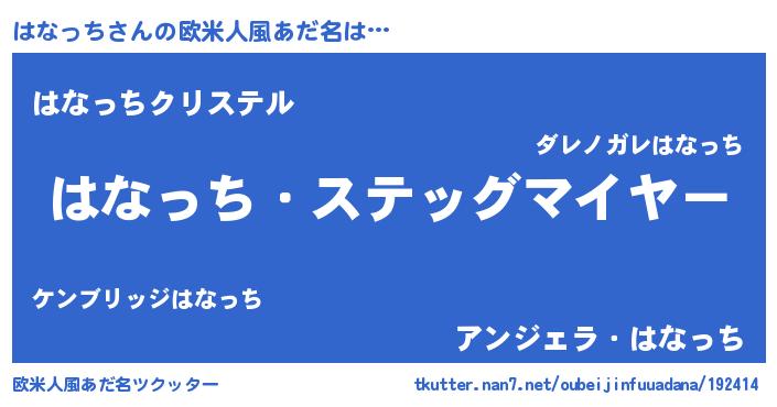 | 男性向けラノベタイトル風あだ名 | 『緋弾のハナッチ』『魔弾の王とはなっち』 |