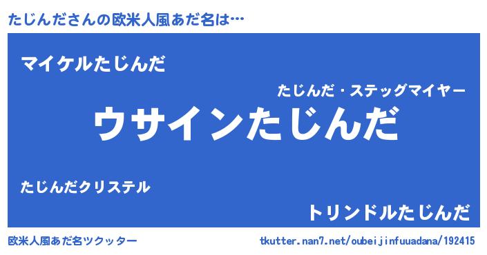 | 男性向けラノベタイトル風あだ名 | 『たじんだの嫁は女の子じゃないと思った?』 |
