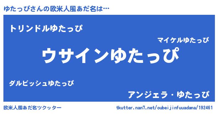 | 女子向けラノベタイトル風あだ名 | 『ゆたっぴの卵を拾いまして』 |