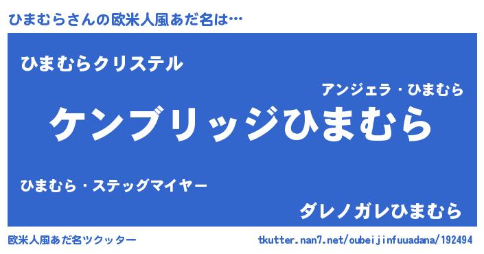 | 男性向けラノベタイトル風あだ名 | 『Re:ひまむらから始める異世界生活』 |