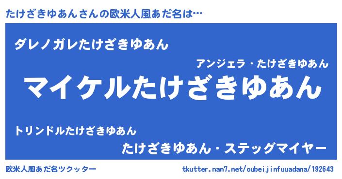 | 男性向けラノベタイトル風あだ名 | 『たけざきゆあんの憂鬱』 |