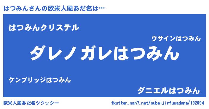 | 意味不明あだ名 | 『住所不定無職はつみん(8歳)』 |