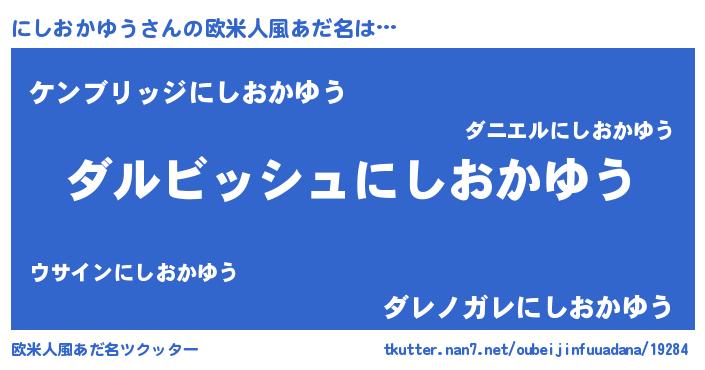 | 男性向けラノベタイトル風あだ名 | 『にしおかゆうという概念が存在しない退屈な世界 』 |