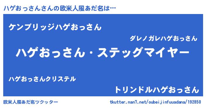 | 意味不明あだ名 | 『自称ハゲおっさん』 |