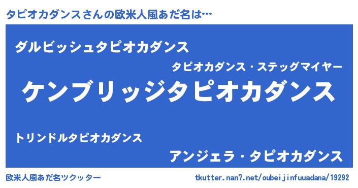 | 男性向けラノベタイトル風あだ名 | 『Re:タピオカダンスから始める異世界生活』 |