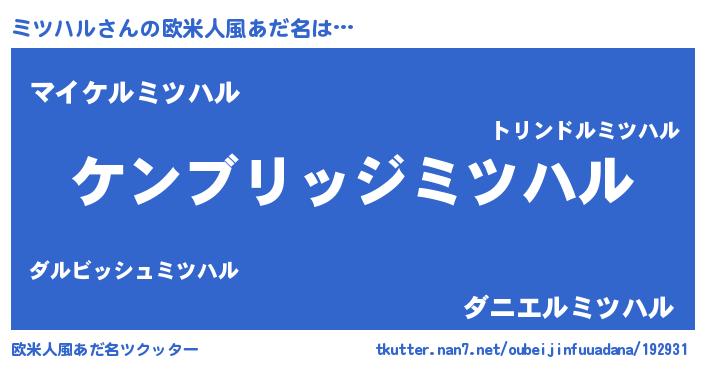 | 男性向けラノベタイトル風あだ名 | 『Re:ミツハルから始める異世界生活』 |