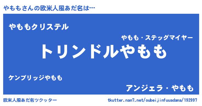 | 女子向けラノベタイトル風あだ名 | 『やももの玉の輿計画!』『闇のやもも』 |