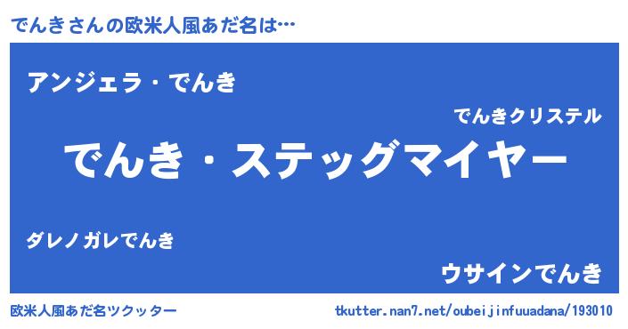 | 意味不明あだ名 | 『とにかく怪しいでんき』『自称でんき』 |