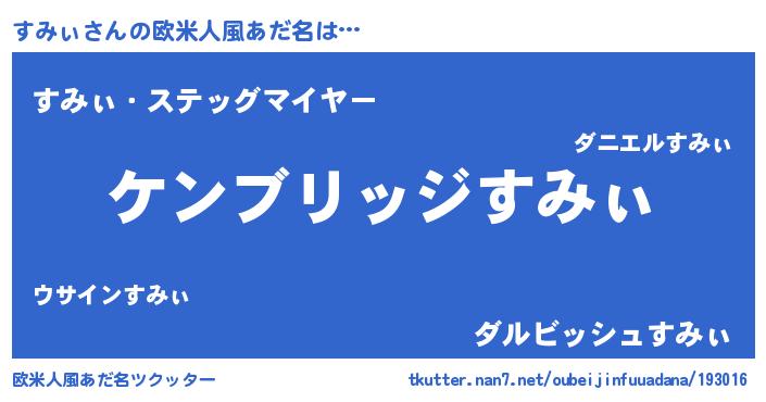 | 男性向けラノベタイトル風あだ名 | 『Re:すみぃから始める異世界生活』 |