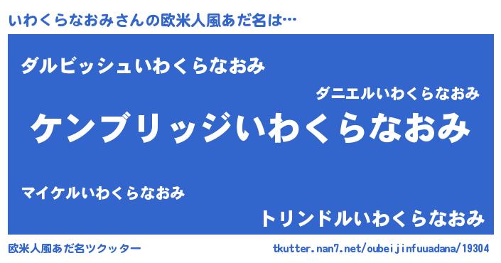 | 男性向けラノベタイトル風あだ名 | 『Re:いわくらなおみから始める異世界生活』 |