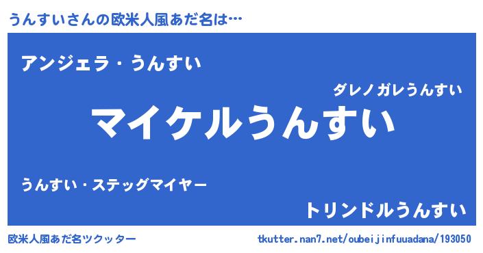 | 男性向けラノベタイトル風あだ名 | 『うんすいの憂鬱』『緋弾のウンスイ』 |
