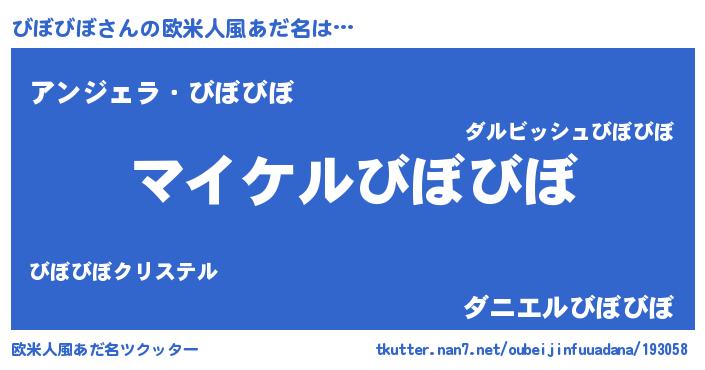 | 2回繰り返すあだ名 | 『びぼびぼ』『ぼんぼん』『びびぼぼ』 |