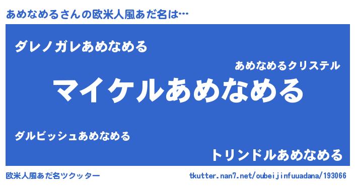 | 胡散臭い通販商品みたいなあだ名 | 『億万長者になれる霊験あらたかなお札…その名も「あめなめる」』 |