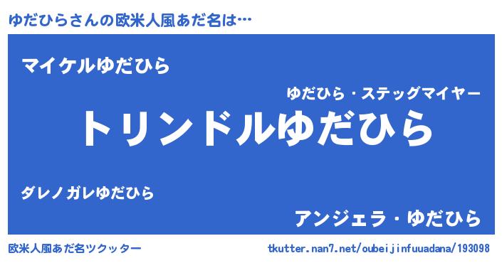 | 男性向けラノベタイトル風あだ名 | 『ゆだひら~年齢イコール彼女いない歴の魔法使い~』 |