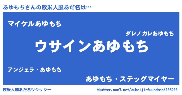 | 男性向けラノベタイトル風あだ名 | 『あゆもちの嫁は女の子じゃないと思った?』 |