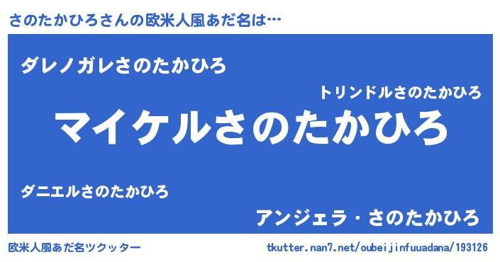 | 男性向けラノベタイトル風あだ名 | 『サノタカヒロアートオンライン』 |