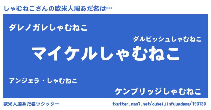 | 男性向けラノベタイトル風あだ名 | 『しゃむねこの憂鬱』 |