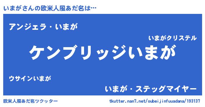 | ポケモン風あだ名 | 『イマセウス』『イマゴンZ』 |