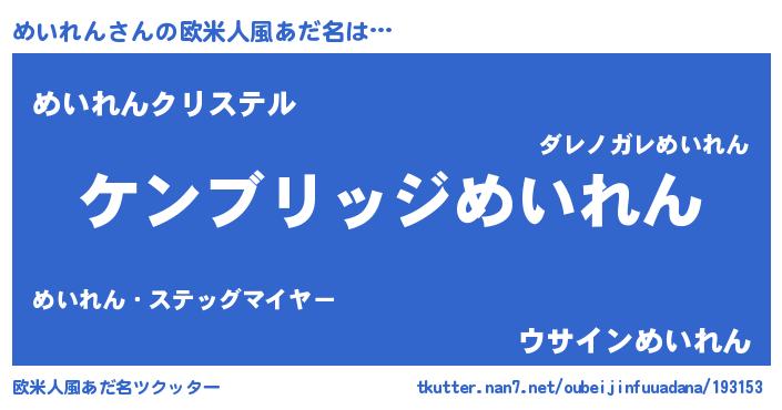 | ポケモン風あだ名 | 『メイセウス』『メイレダネ』 |