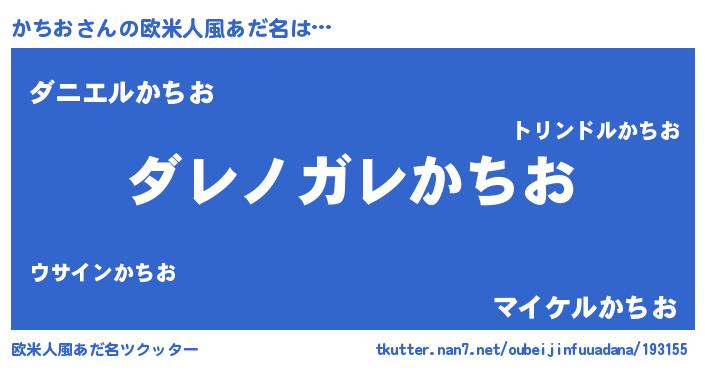 | 男性向けラノベタイトル風あだ名 | 『魔弾の王とかちお』『かちおの憂鬱』 |