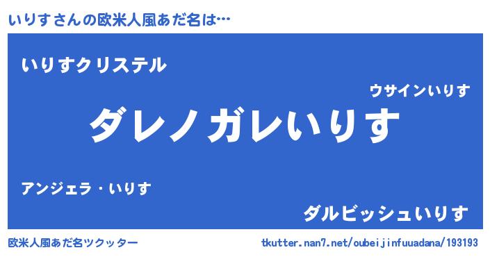 | ヒーロー風カッコイイあだ名 | 『仮面イリダー』『ウルトラいりすマン』 |