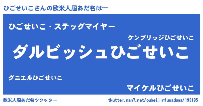| 男性向けラノベタイトル風あだ名 | 『ひごせいこという概念が存在しない退屈な世界 』 |