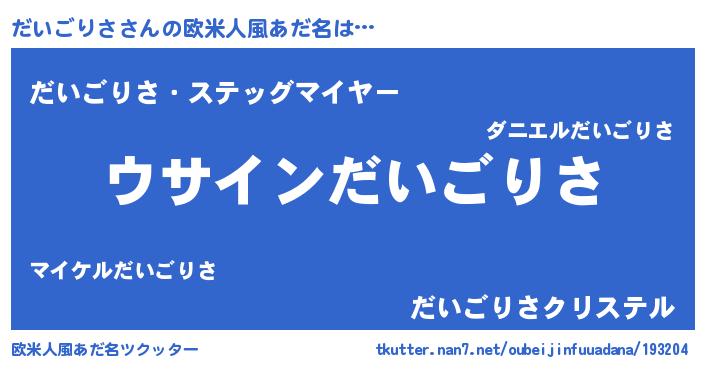 | ヒーロー風カッコイイあだ名 | 『魔戒騎士ダイ』『友情の使者だいごりさ』 |
