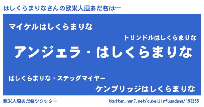 | 男性向けラノベタイトル風あだ名 | 『はしくらまりなに滅ぼされるだけの簡単なお仕事です』 |