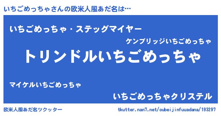 | 男性向けラノベタイトル風あだ名 | 『いちごめっちゃ~年齢イコール彼女いない歴の魔法使い~』 |