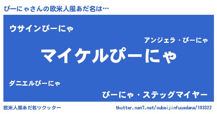 | 女子向けラノベタイトル風あだ名 | 『ぴーにゃ姫と円卓の騎士』 |