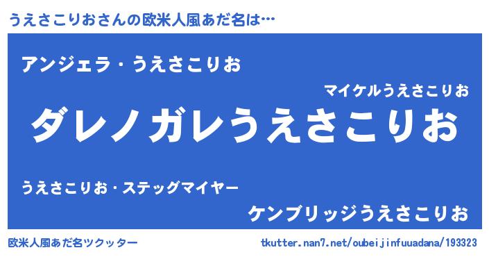 | 男性向けラノベタイトル風あだ名 | 『魔弾の王とうえさこりお』 |