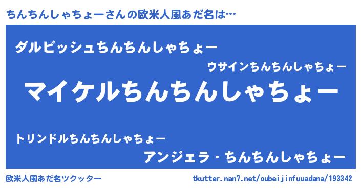| 男性向けラノベタイトル風あだ名 | 『ちんちんしゃちょーの憂鬱』 |