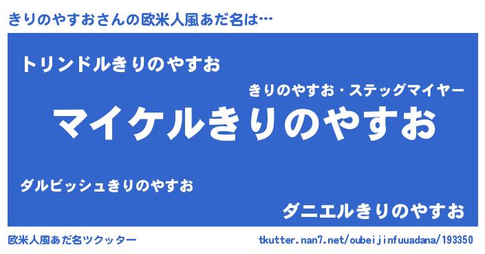 | 男性向けラノベタイトル風あだ名 | 『きりのやすおの憂鬱』 |
