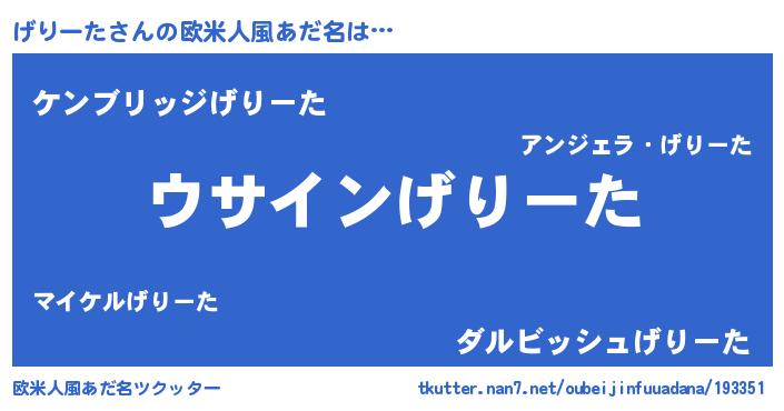 | 意味不明あだ名 | 『とにかく怪しいげりーた』 |