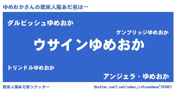 | 女子向けラノベタイトル風あだ名 | 『ゆめおか様がみてる』 |