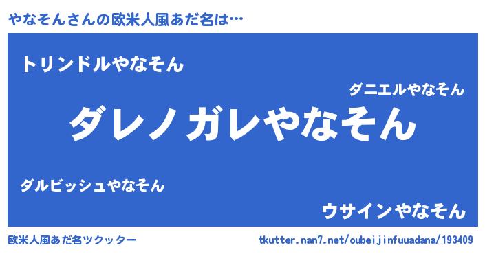 | 男性向けラノベタイトル風あだ名 | 『この素晴らしい世界にやなそんを!』 |