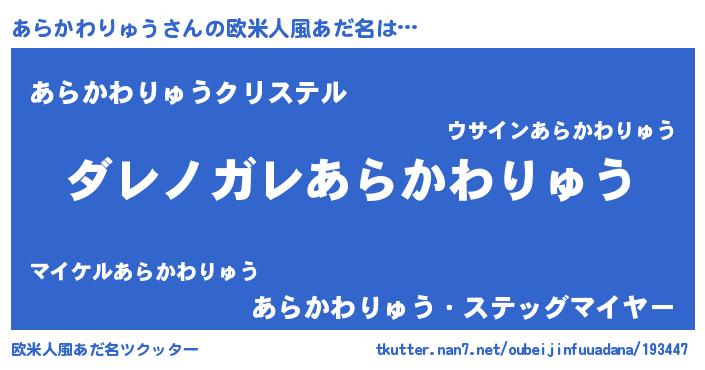 | ポケモン風あだ名 | 『アーライ』『アラカダネ』 |