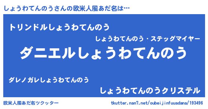 | 男性向けラノベタイトル風あだ名 | 『ノーゲーム・ノーショウワテンノウ』 |