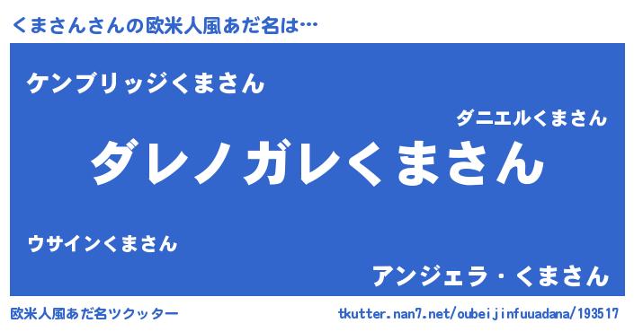 | ピコ太郎風あだ名 | 『クク太郎』『クマ三郎』『ピク三郎』 |