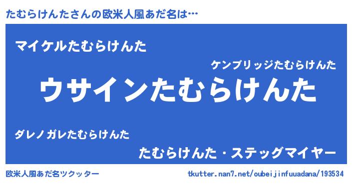 | ポケモン風あだ名 | 『ヒタムラケンタ』『タムチュウ』 |