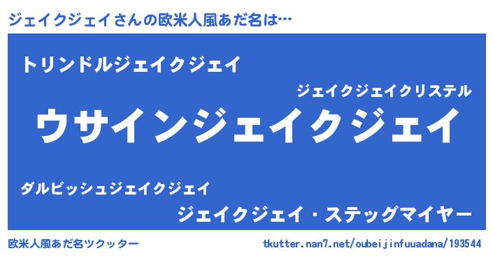| 男性向けラノベタイトル風あだ名 | 『ダンジョンにジェイクジェイを求めるのは間違っているだろうか』 |