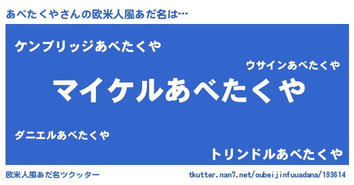| 胡散臭い通販商品みたいなあだ名 | 『億万長者になれるブレスレット…その名も「あべたくや」』 |