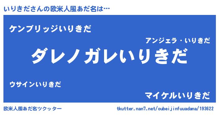 | 男性向けラノベタイトル風あだ名 | 『魔弾の王といりきだ』『いりきだの憂鬱』 |