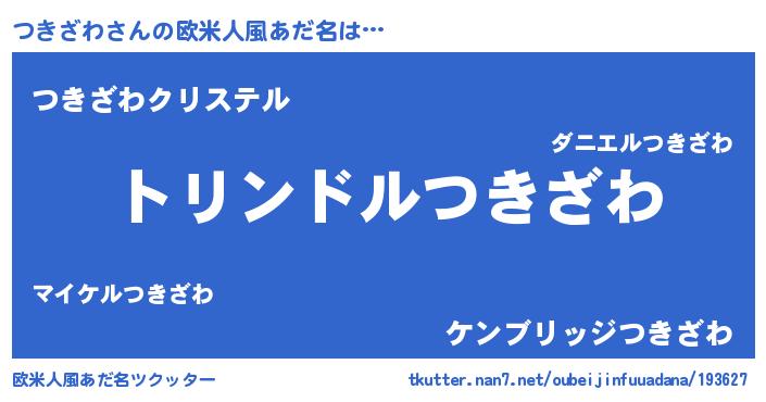 | 男性向けラノベタイトル風あだ名 | 『転生したらつきざわだった件』 |