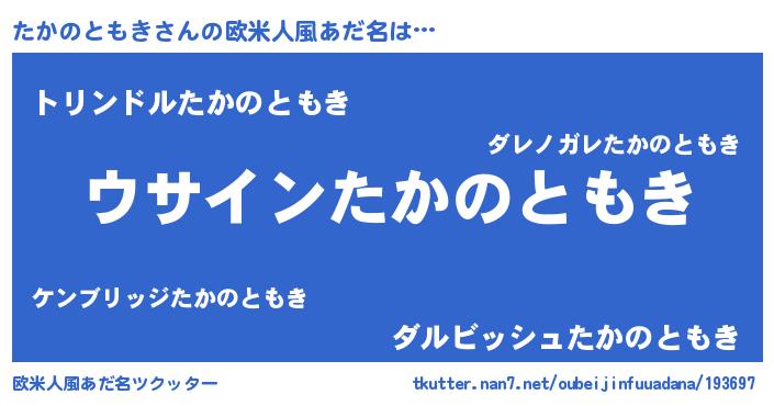 | 男性向けラノベタイトル風あだ名 | 『ダンジョンにたかのともきを求めるのは間違っているだろうか』 |